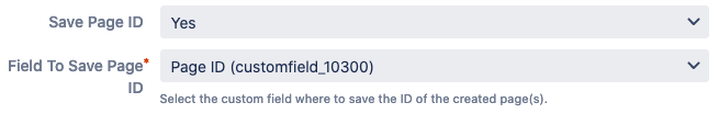 - Save Page ID: Select the ID of the created page should be saved in a custom field.