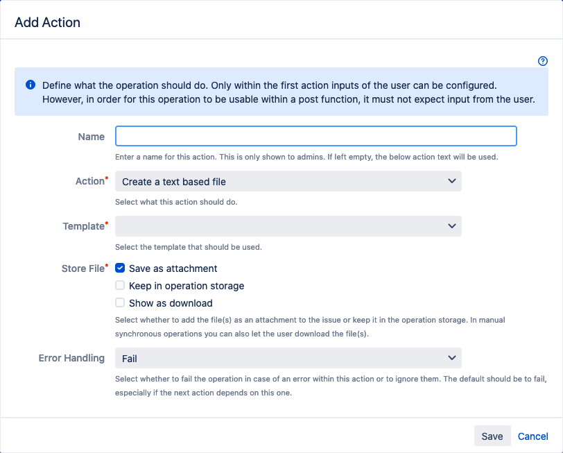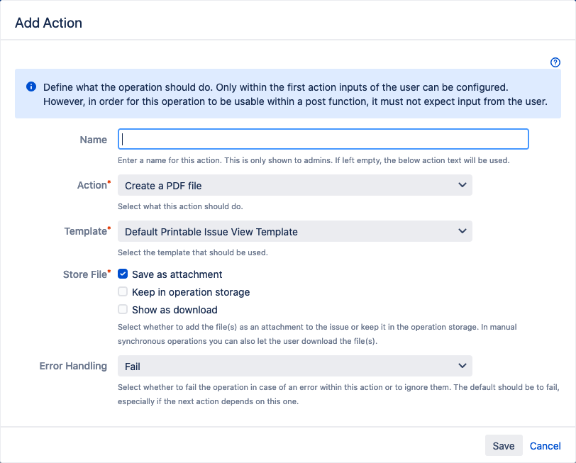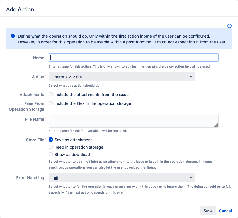 to add the file(s) as an attachment to the issue (Save as attachment) or