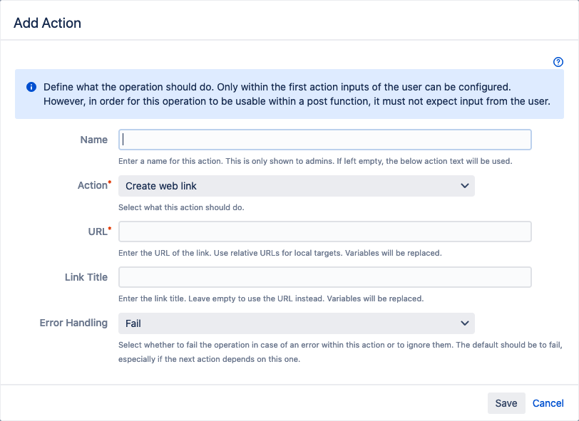 - Create Link: Select if a link to the new page should be added to the Jira issue.