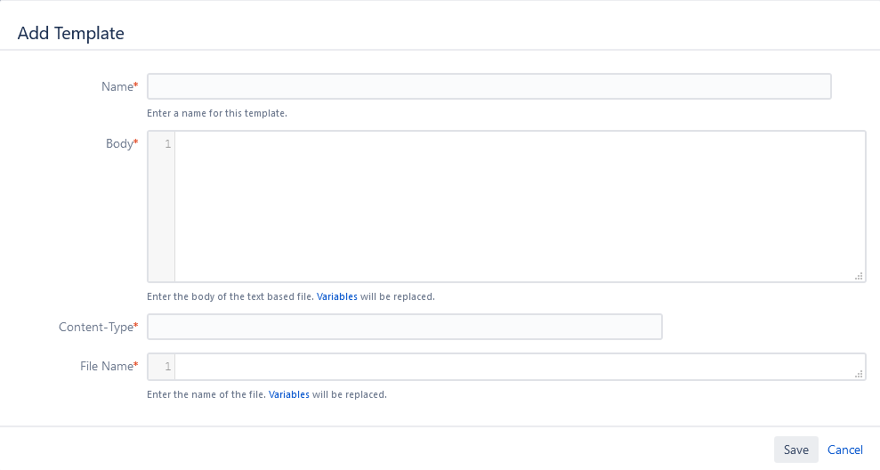 Click Add Template in the "Text File Templates" section of the "Manage Tempates" dialog. The "Add Template" dialog for a single issue looks like the following: