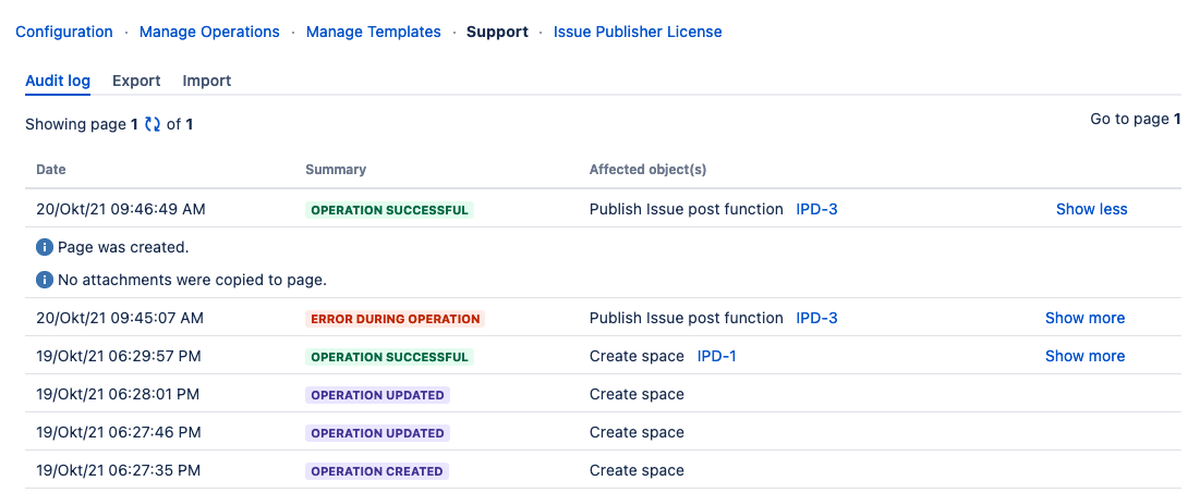 You can export your Issue Publisher for Jira configuration as a ZIP file. This file contains all operations, custom templates and other settings made in Issue Publisher for Jira.