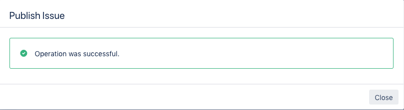 After successfully executing a publishing operation, a confirmation dialog is displayed.