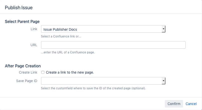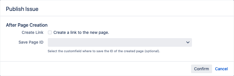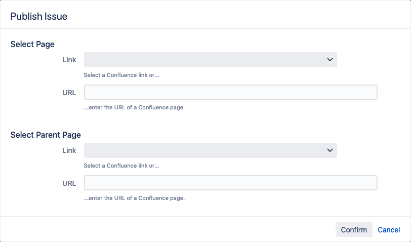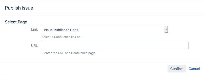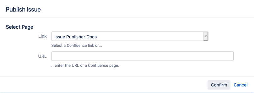 - Link*: Select one of the linked Confluence pages of the current issue.