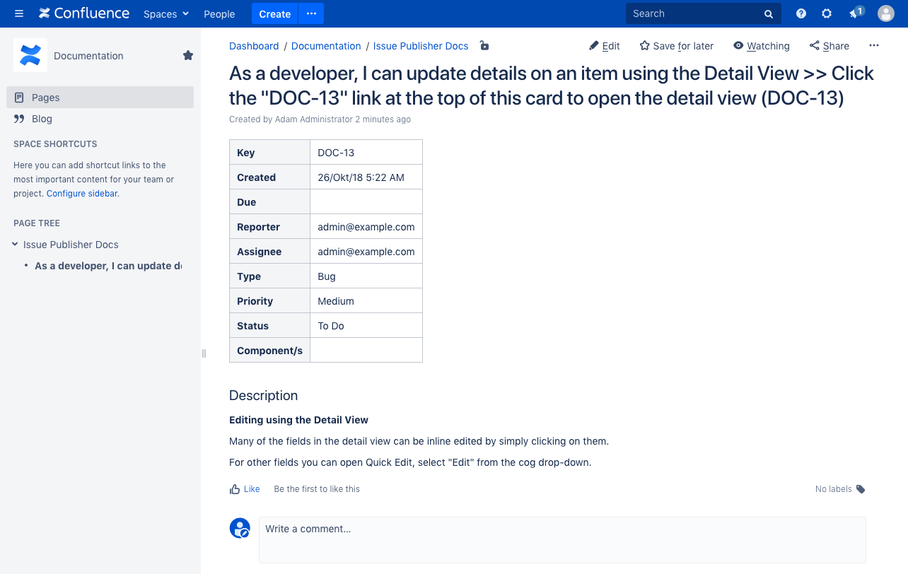 After installing Teamworkx Issue Publisher for Jira several default templates are already available, for example: