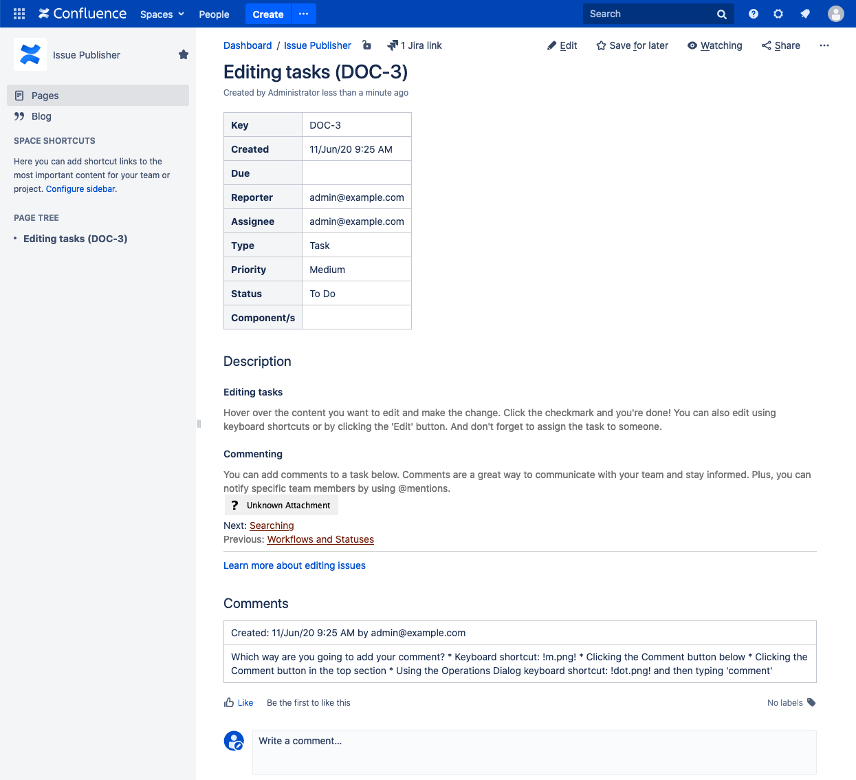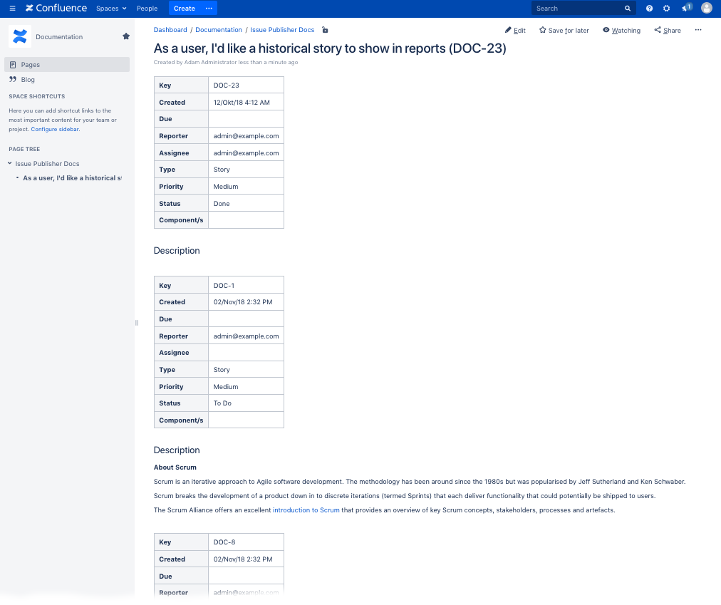 After installing Teamworkx Issue Publisher for Jira several default templates are already available, for example: