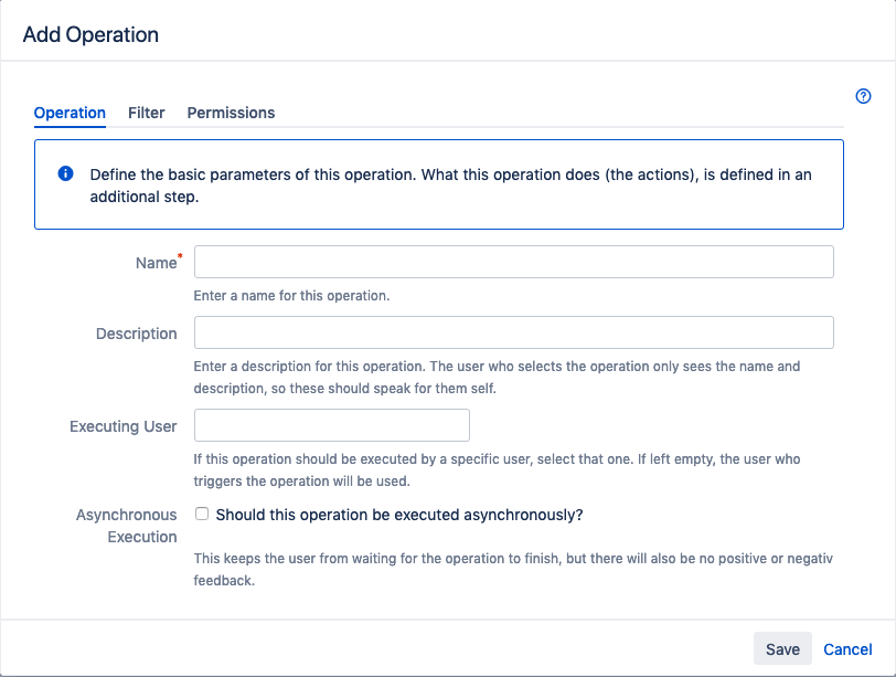 - Asynchronous Execution: Check the "Should this operation be executed asynchronously?" option to keep the user from waiting for the operation to finish. There will also be no positive or negativ feedback.