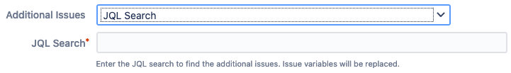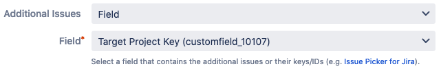 - Select Field to select a custom field that contains the additional issues from the "Field" text box. For example, this can be a Issue Picker custom field provided by Teamworkx Issue Picker for Jira.