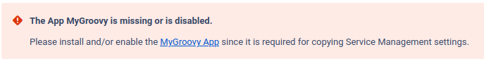 In case the MyGroovy App is not installed or disabled the box shown on the right will be displayed in the workflow post function during the configuration.