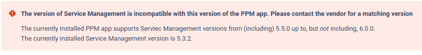 In case Jira Service Management version installed is actually incompatible with this Project Portfolio Management version the box shown on the right will be displayed in the workflow post function during the configuration. The mismatching version is displayed at the end of the box.