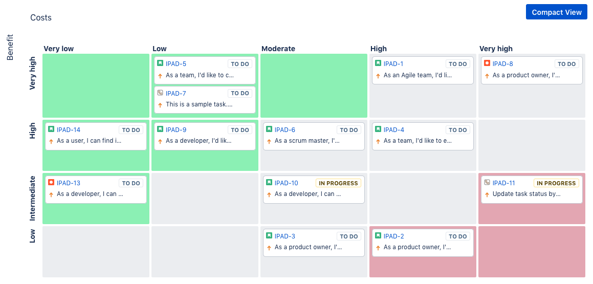 In "Compact View" mode, the additional custom fields selected in the card layout configuration are removed from the cards.