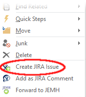 Then select Create JIRA Issue from the Outlook menu or from the email's context menu.