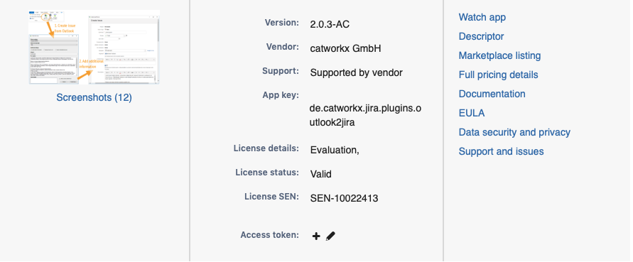- Search the Marketplace for "Outlook Integration". Outlook Integration for Jira from catworkx should appear in the list of results.