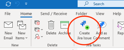 Once the installation and configuration of the add-in is completed, Jira issues can created directly from emails in Microsoft Outlook.