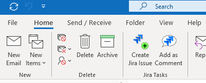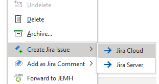 | Add as Comment | Add the currently selected email content as comment to an existing Jira issue |