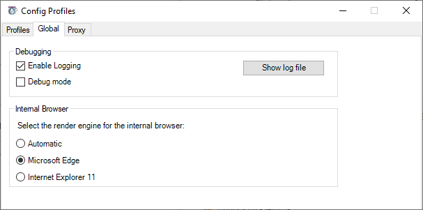 To open the global settings go to the Profile Manager and open the tab Global. The following dialog will appear: