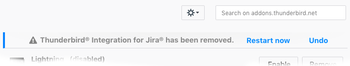 4. Select Restart now to confirm the deinstallation and restart Thunderbird.