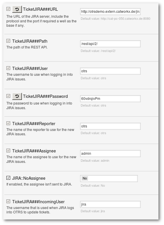 For any other settings please go to OTRS SysConfig and search for 'jira' and select the menu item Core::REST.