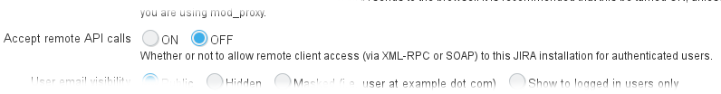 If you are using catWorkX OTRS Integration for JIRA on a JIRA 6.4 (or older) system, you have to enable remote API calls.